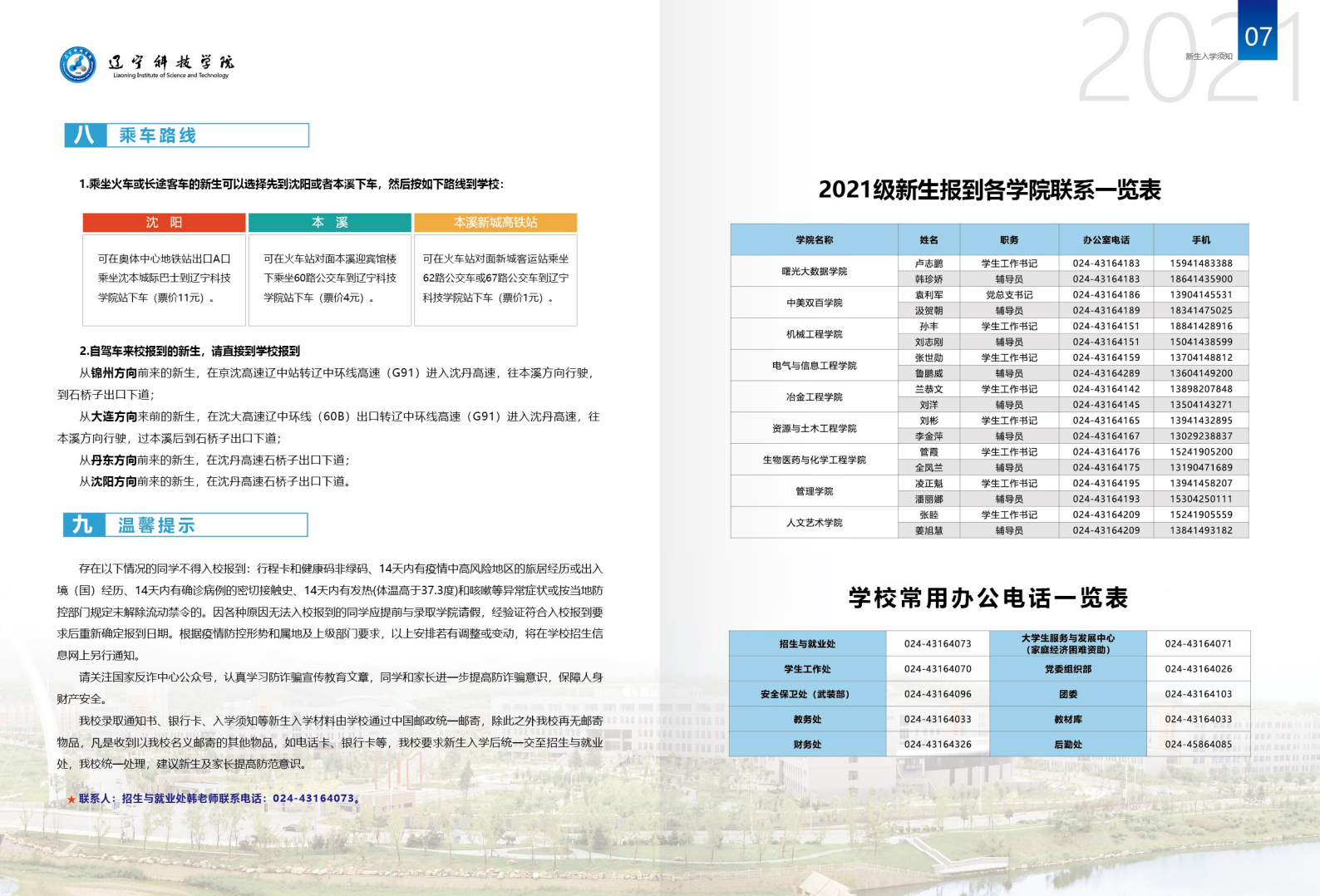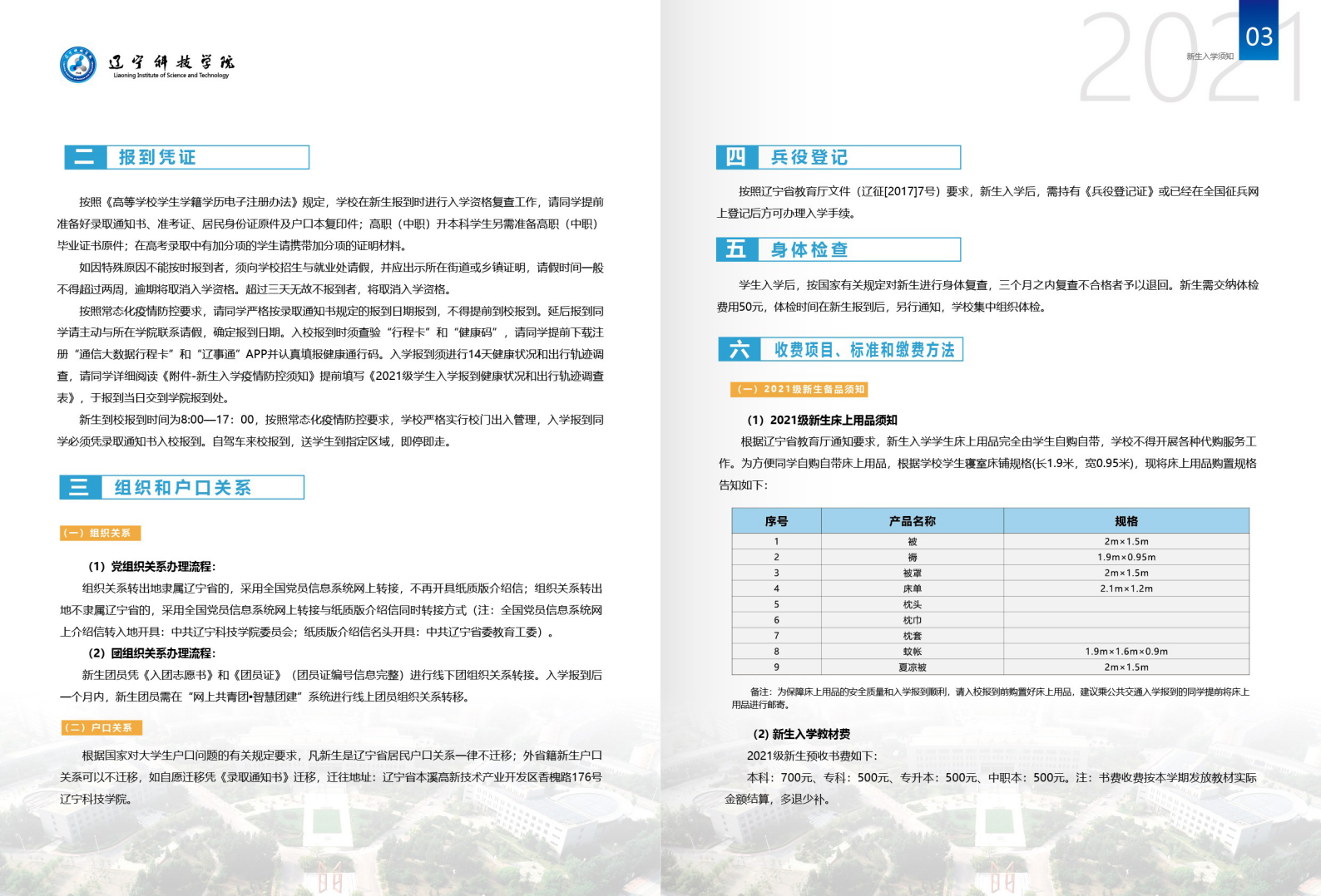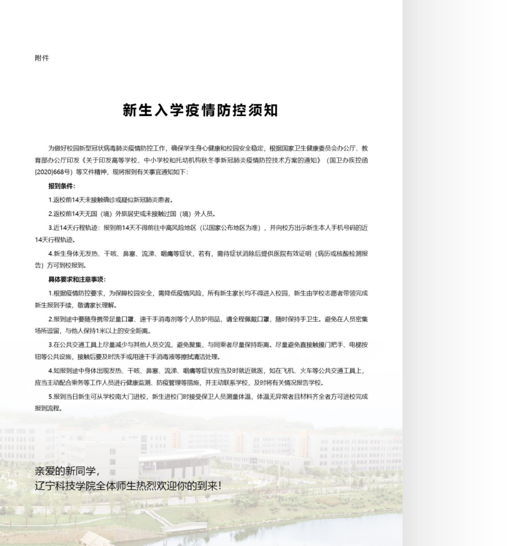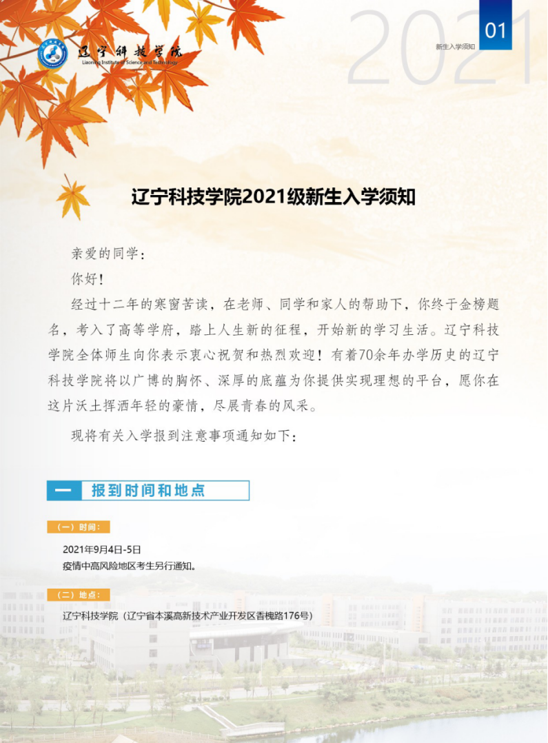 辽宁科技学院2021年新生入学须知